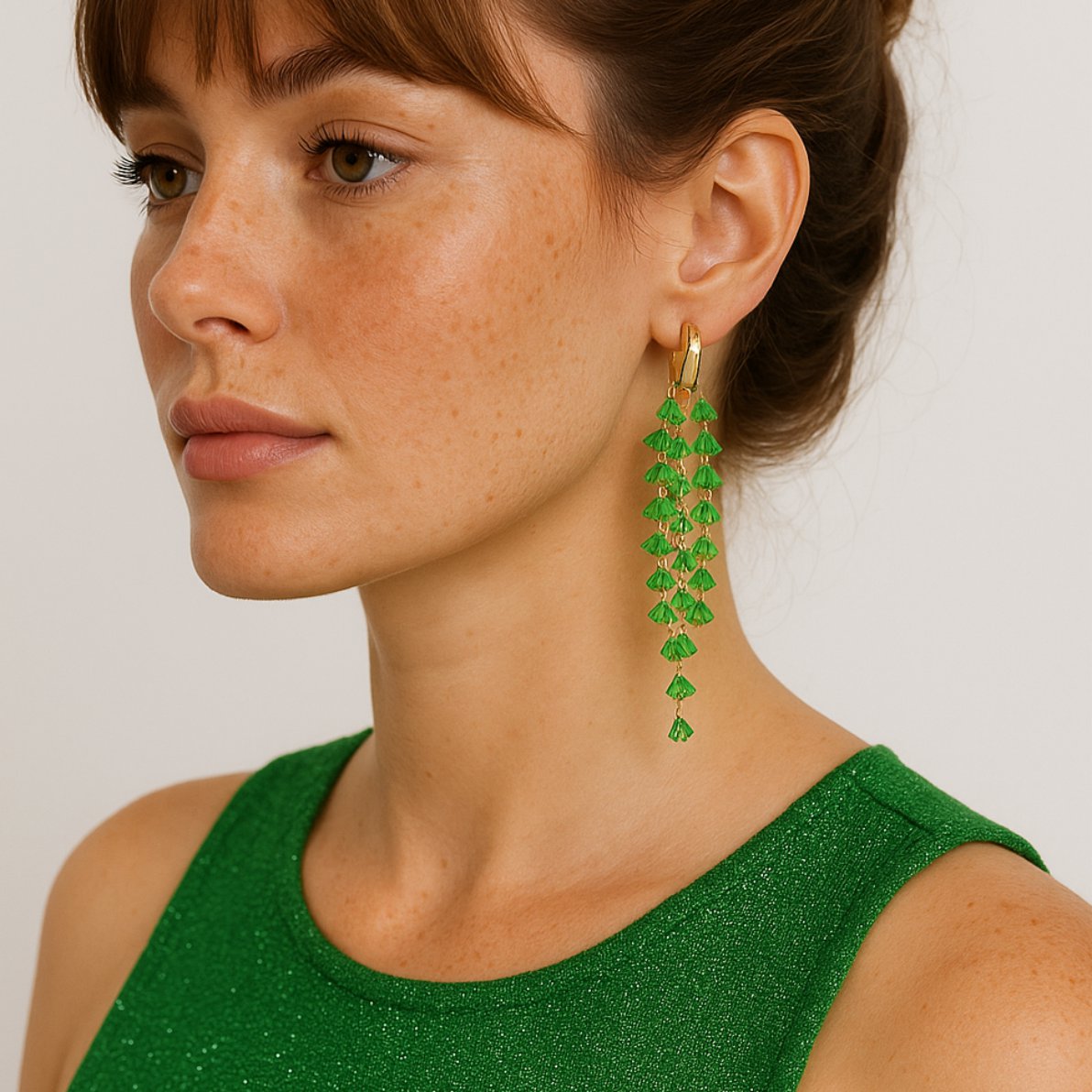 Portanto, se você está em busca de um acessório que cause um efeito bonito e marcante em seu look de festa, o Brinco Verde de Festa Cascata de Cristais Linois é a escolha perfeita. Aposte neste brinco e arrase em qualquer evento especial!