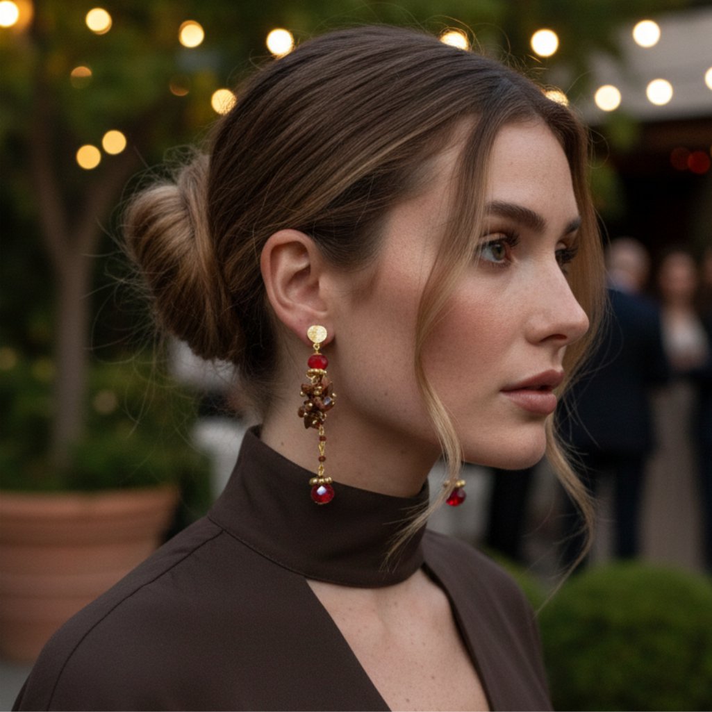 Brinco de Pressão Marrom de Festa Longo Elegante Viky