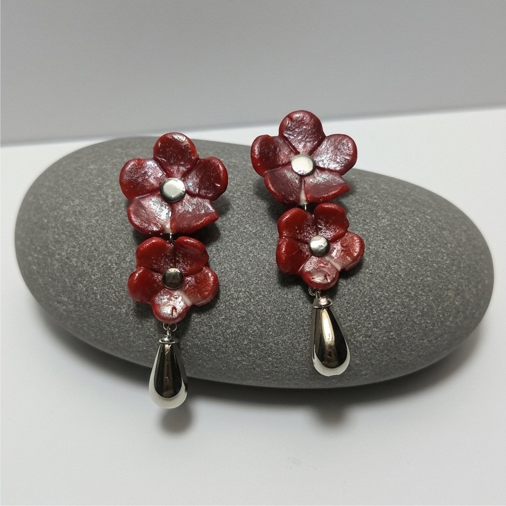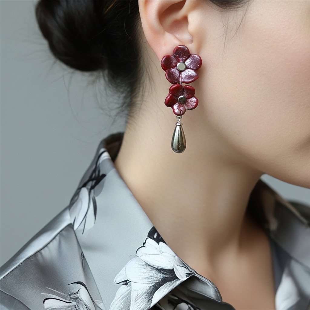 O brinco de pressão vinho e prata de flores longo é simplesmente deslumbrante! Com uma combinação de cores elegante e um design delicado de flores, este brinco é perfeito para adicionar um toque de sofisticação ao seu visual.